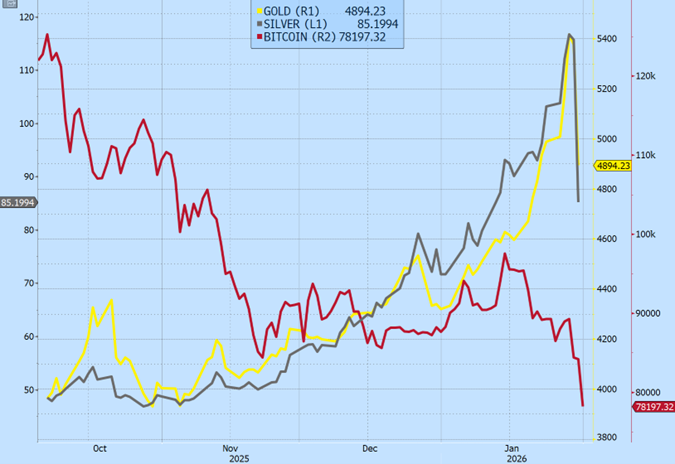 Probably the most talked about asset this month was the commodity known as silver. In the first 28 days of the month, silver went up 64% and had everyone scrambling to get their hands on some. Three days later, at month end, it was down 28% from the month high. In a month and year that started with the kidnapping of a major oil producing country’s president that led to volatility in oil prices, heightened tension in the middle east, major sector rotations and divergences emerging within the AI stocks, it was no small feat.